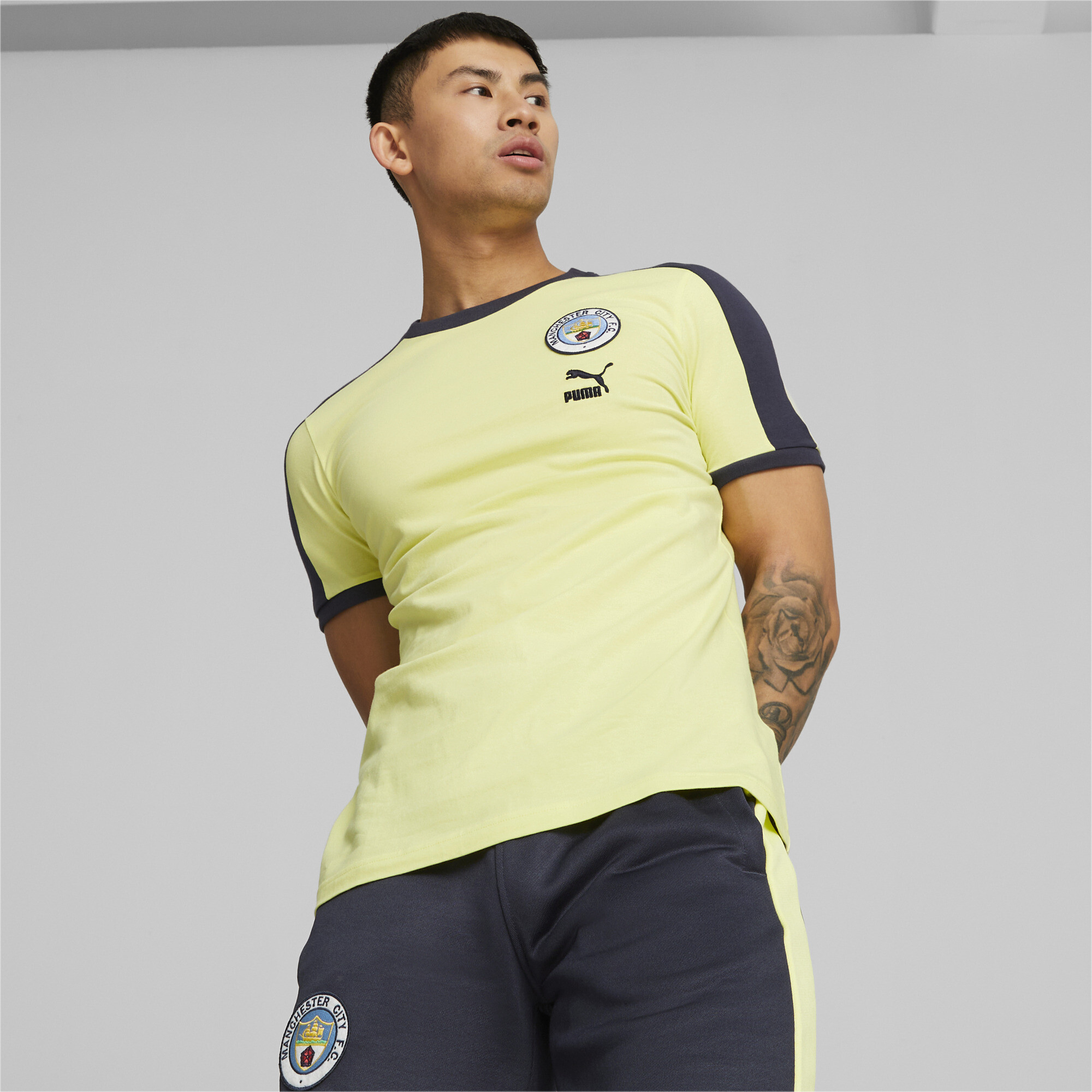 Puma Mens Manchester City F.C. Heritage T7 T-shirt - Yellow Cotton - Size Medium | Puma Sale | Discount Designer Brands