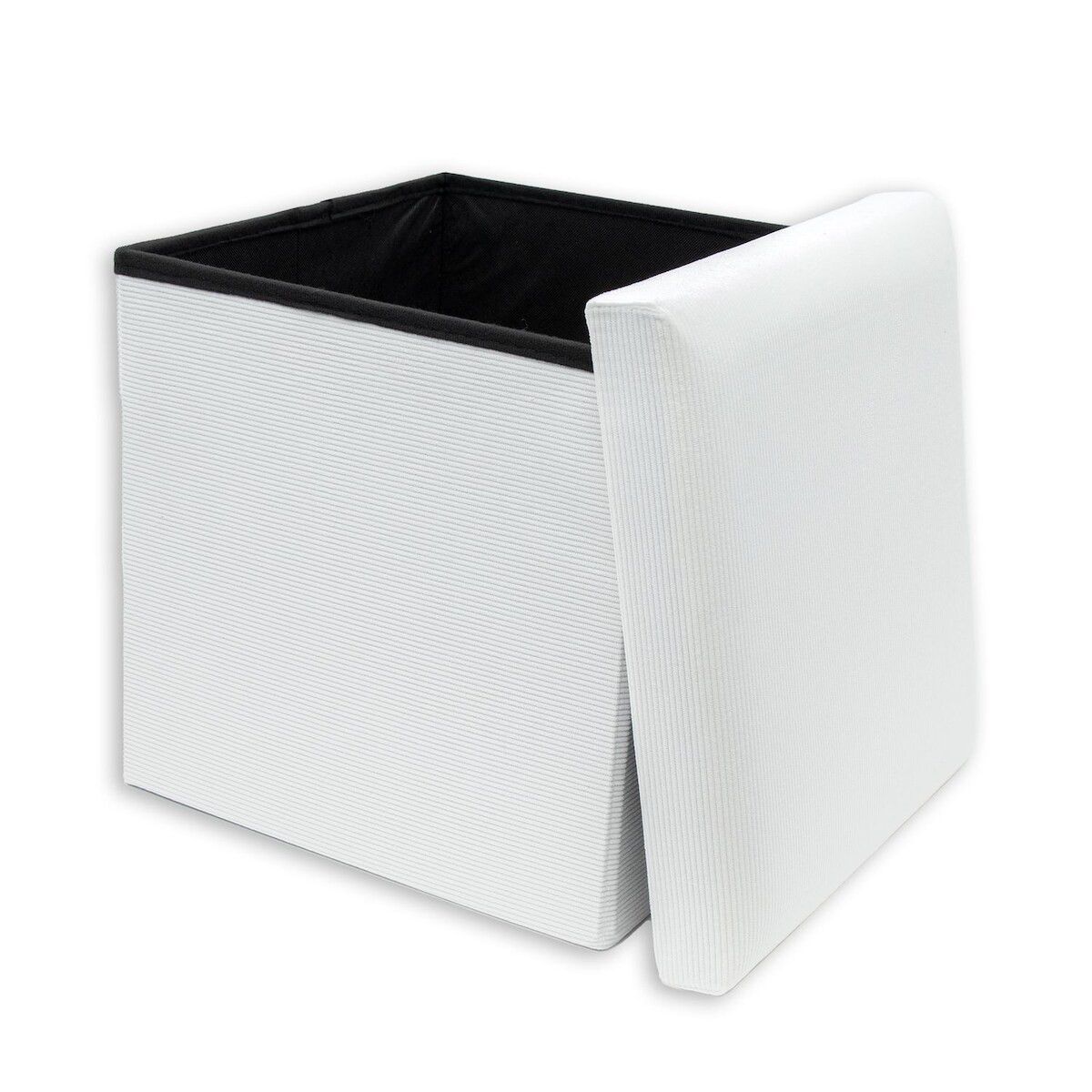 Intirilife Faltbarer Sitzhocker 38 x 38 x 38 cm in WEIß - Sitzwürfel mit Stauraum und Deckel aus Stoff in Cord Optik Fußablage Aufbewahrungsbox