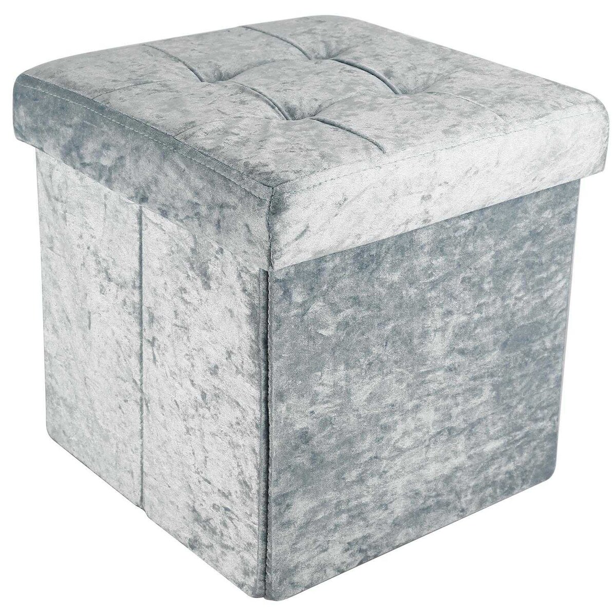 Intirilife Faltbarer Sitzhocker 38x38x38 cm in Samt Blaugrau - Sitzwürfel Fußhocker mit Stauraum und Deckel mit Samtbezug