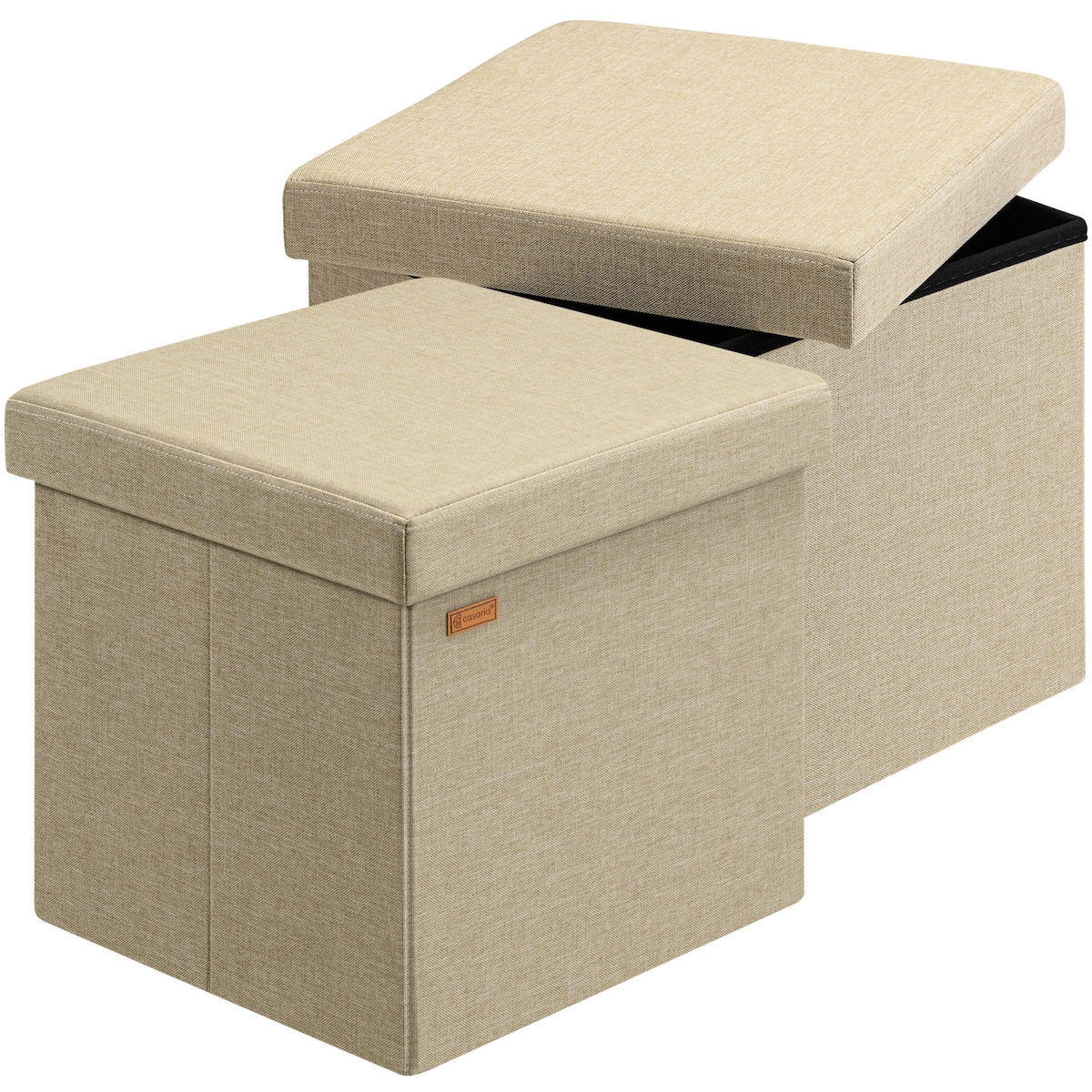 CASARIA® Faltbarer Sitzhocker mit Stauraum 2er Set Leinenoptik Beige