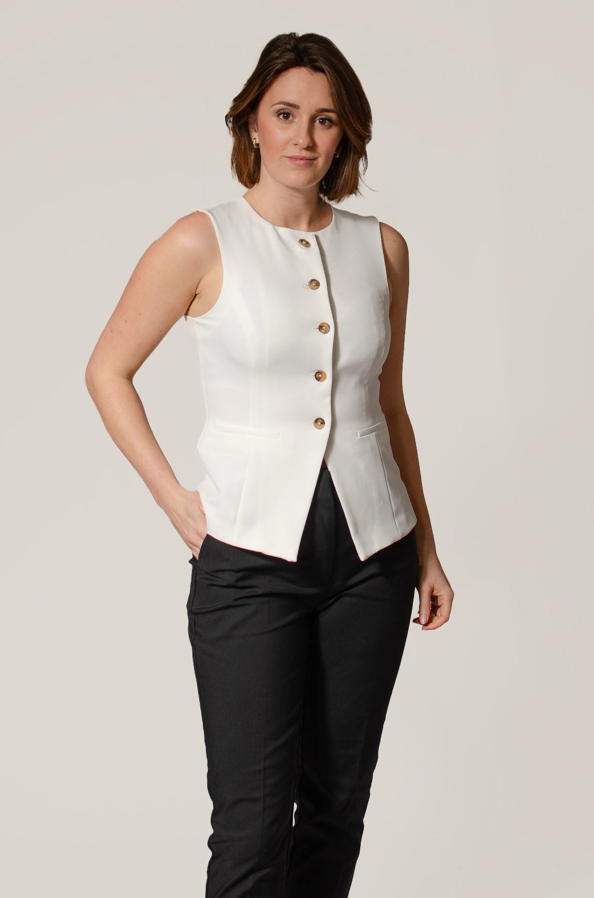 New Look Womens Tailored Waistcoat Round Neck - White - Size 12 UK | New Look Sale | Discount Designer Brands