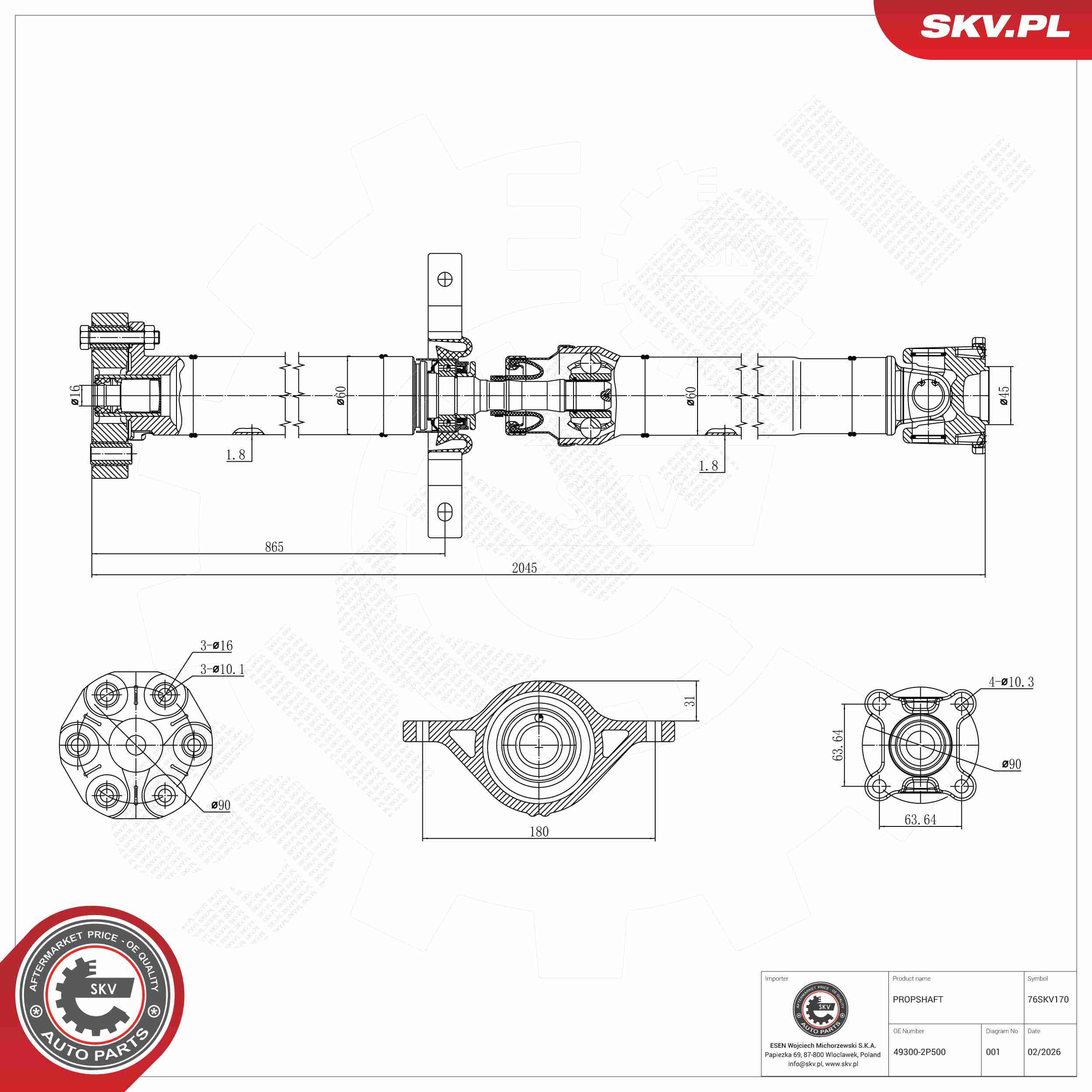 ESEN SKV Antriebswelle 76SKV170 hinten rechts links für KIA 493002P500