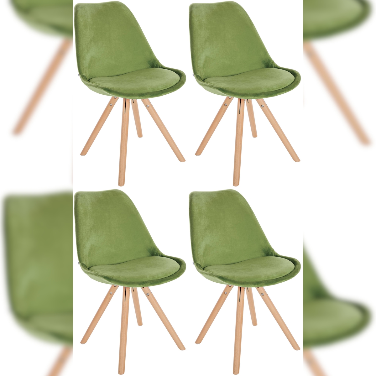 CLP 4er Set Stühle Sofia Samt hellgrün/natura (rund)