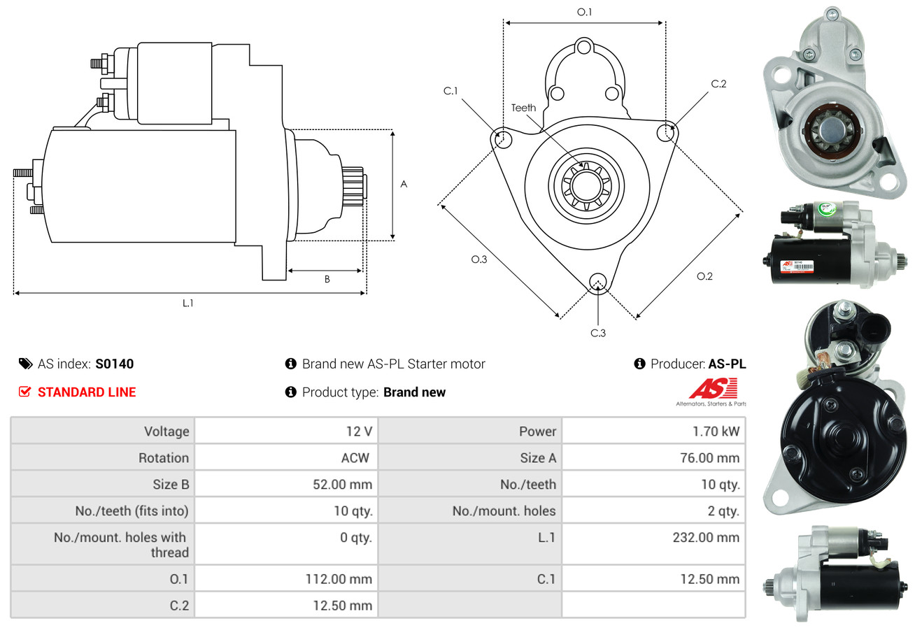 AS-PL Starter S0140 12V für VW 02T911024X 02T911024