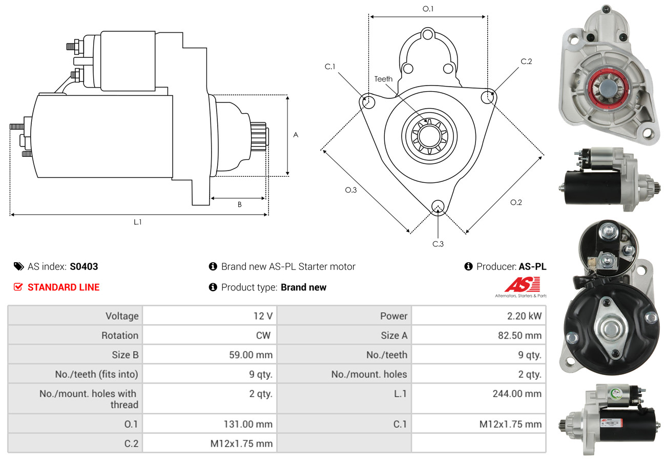 AS-PL Starter S0403 12V für VW 070911023B 070911023BX