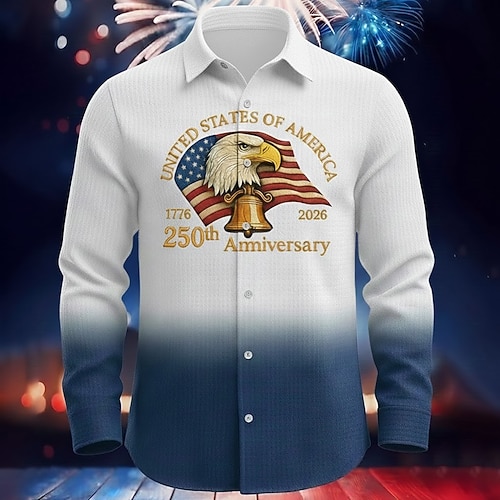 Per uomo Aquila Bandiera degli Stati Uniti 250° anniversario degli Stati Uniti Camicia Camicia a nido d'ape Camicia casual Manica Lunga Vintage Retrò Abbigliamento Quotidiano Ferie Estate Primavera