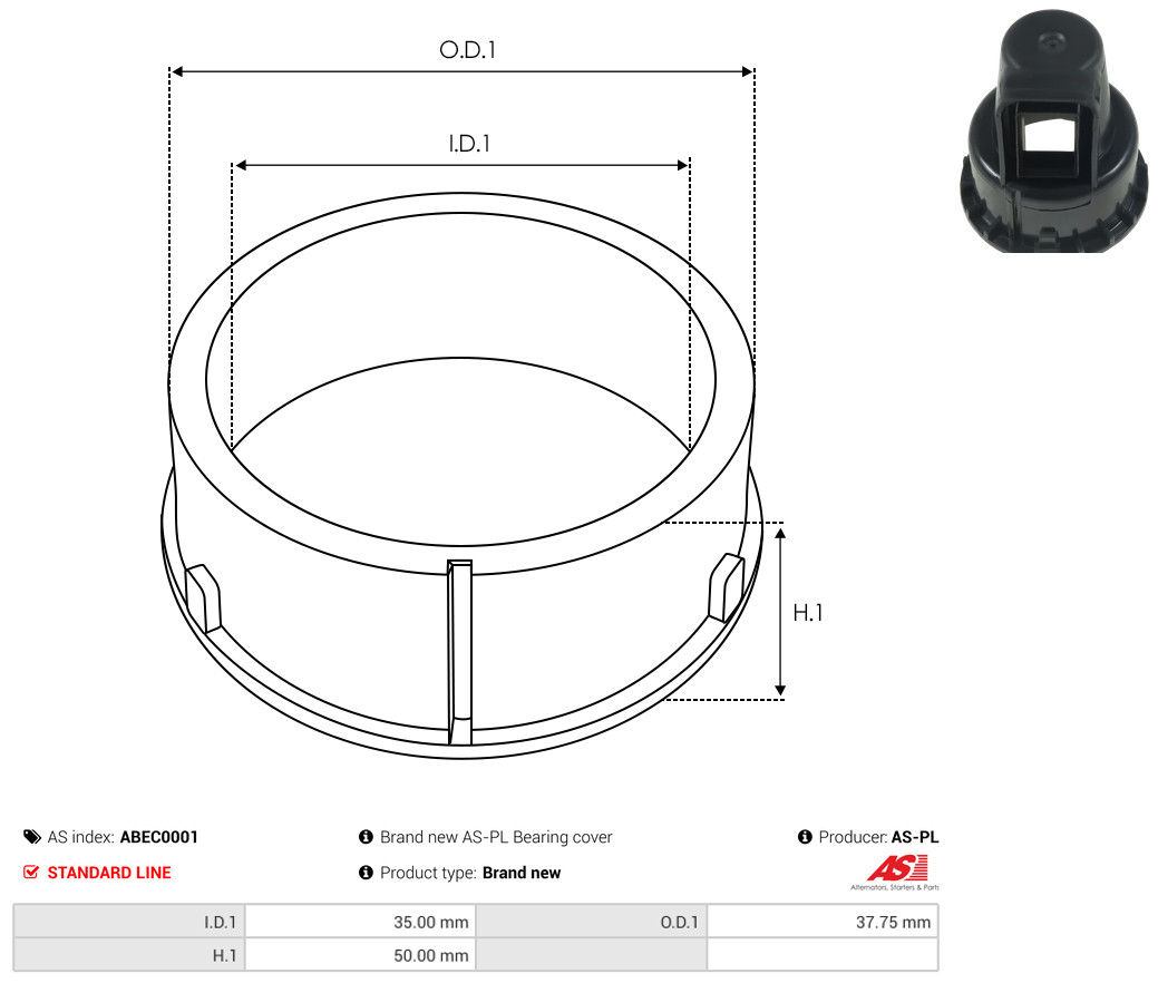 AS-PL Schutzkappe, Generator Universal 37,75mm für RENAULT VW FIAT TOYOTA DAF IVECO MERCEDES-BENZ MAN NISSAN OPEL 038903223 27404-0D020 0289035391 AB