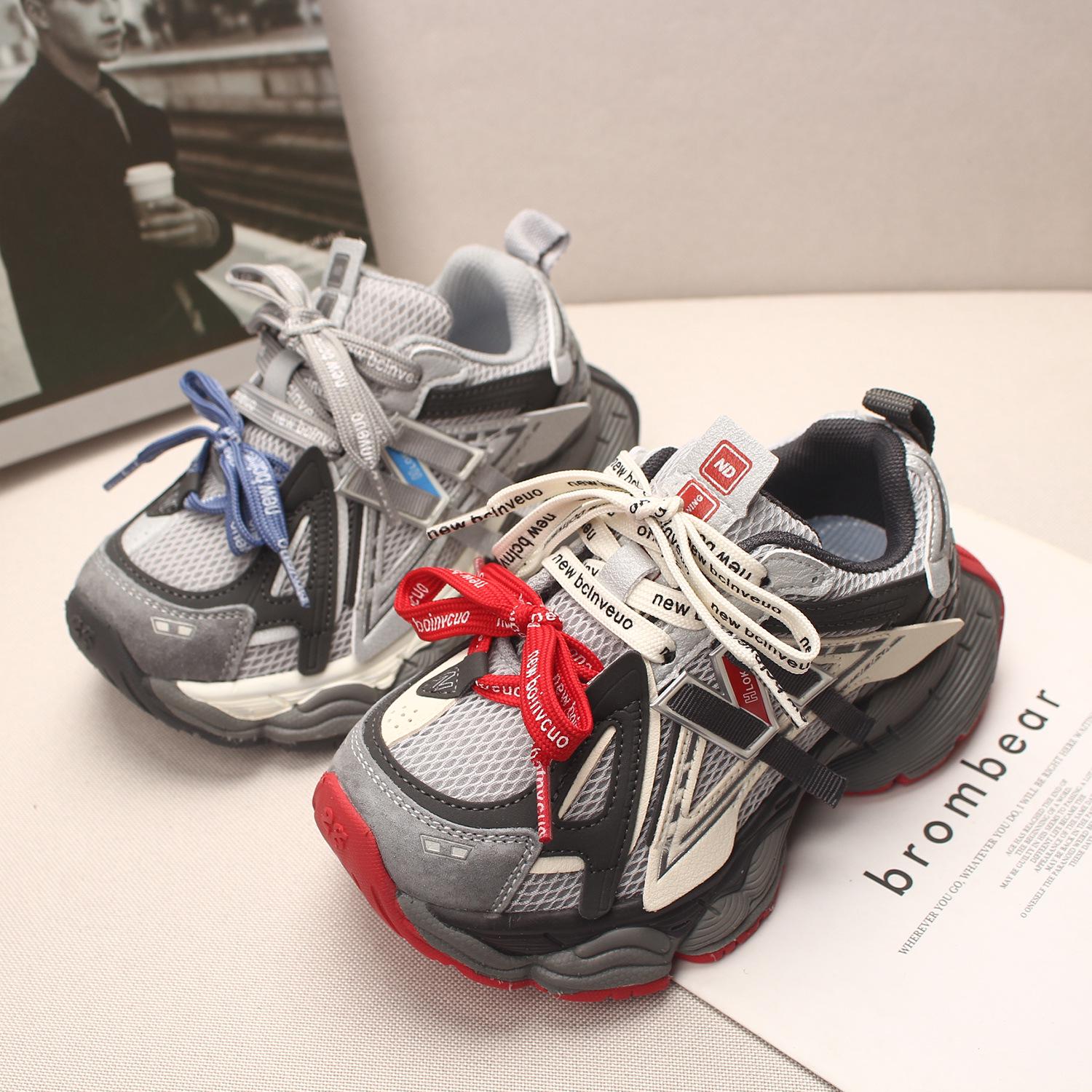 2026 Spring/Autumn Breathable Mesh Kids' Dad Sneakers, Boys Girls Lightweight Sports, Medium/Large Casual Shoes. cm red