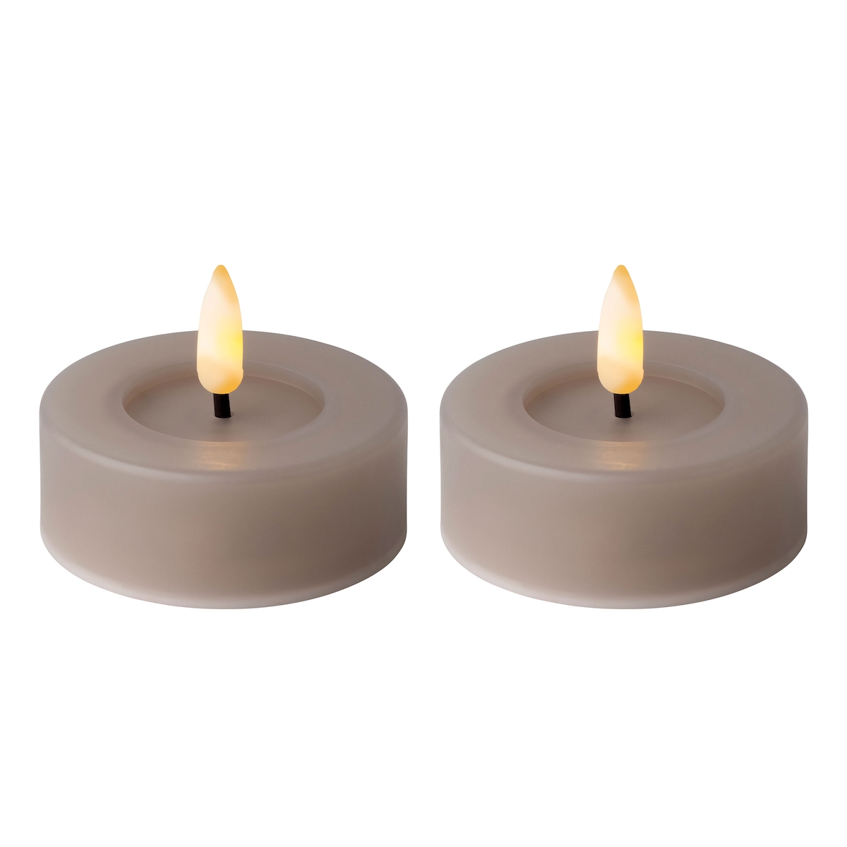 Lumineo 2 LED Teelichter 6,5x5cm Outdoorkerzen Timer Flammenlose Teelichtkerzen Warmweiß Tischkerzen Dekokerzen Teelicht Kerzen Timerfunktion Grau Warm Weiß