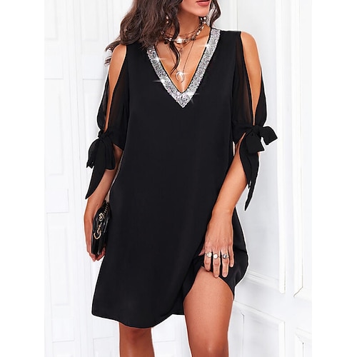 Per donna Mini Abito Abito a Tubino Casual Quotidiano Vestibilità regolare Semplice Manica Corta Scollo a V Nero Estate