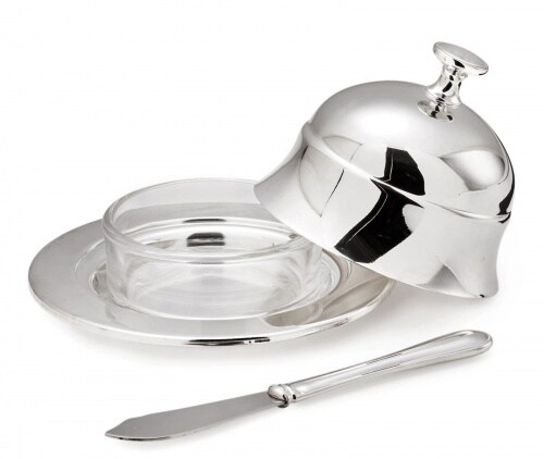 EDZARD Butterdose Mista (250 g Butter), edel versilbert, mit Glasschale und Buttermesser