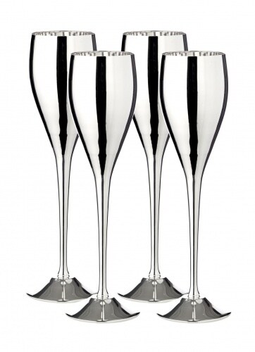 EDZARD 4er Set Sektkelch Sektflöte Dodo, edel versilbert, Höhe 23 cm, Füllmenge 200 ml