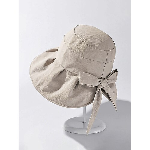 Cappello da sole da donna in poliestere a tesa larga con fiocco, berretto da spiaggia estivo pieghevole con protezione UV in vari colori, elegante per le vacanze primaverili e l'abbigliamento casual di tutti i giorni