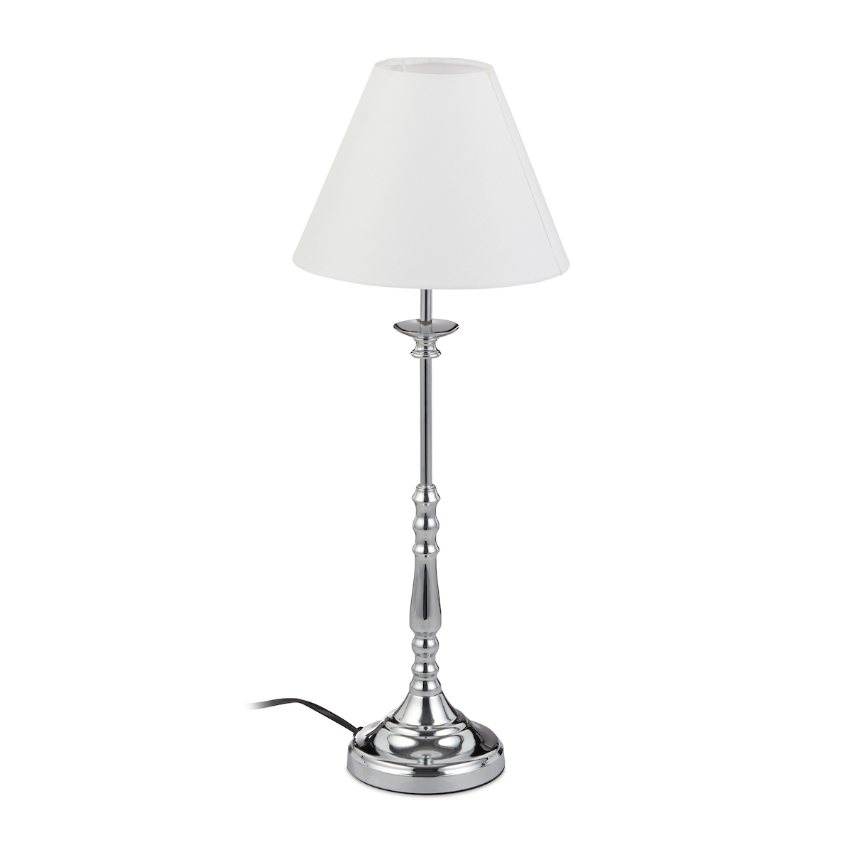 Relaxdays Tischlampe Vintage, Stoff Lampenschirm, spiegelnd verchromt, Dekolampe, E14, H x D 55 x 21 cm, silber/weiß