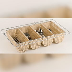 APS Besteckständer/ Besteckbehälter, GN 1/1, Rattanstoff, 53 x 32,5 x 10 cm, vier Kammern, beige