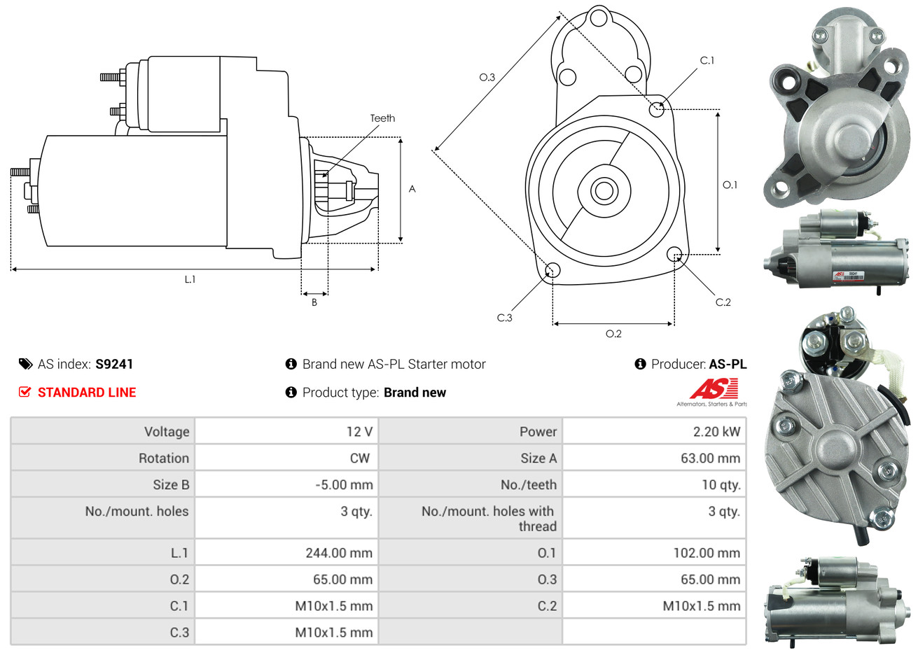 AS-PL Starter S9241 12V für FORD VOLVO 8697587AC 6G9N-11000-GA RE6G9N11000GC