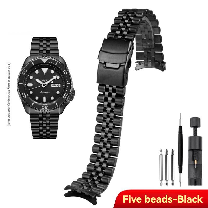 Voor Seiko Nee. 5 Roestvrij Stalen Horlogeband SKX007 SKX009 SRP599 Gebogen Eind Horlogeband 20mm 22mm Metalen Horlogeketen Zilver Zwart