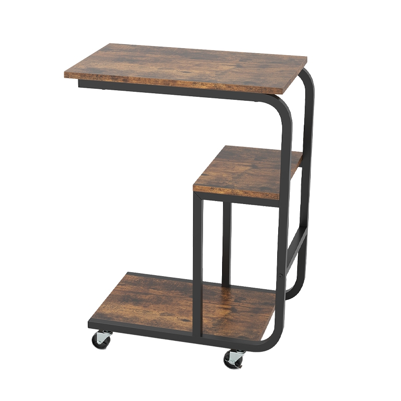 COSTWAY Beistelltisch, Sofatisch mit Rollen, C-Form, 3-stufiger Couchtisch, 53 x 30 x 70 cm, braun