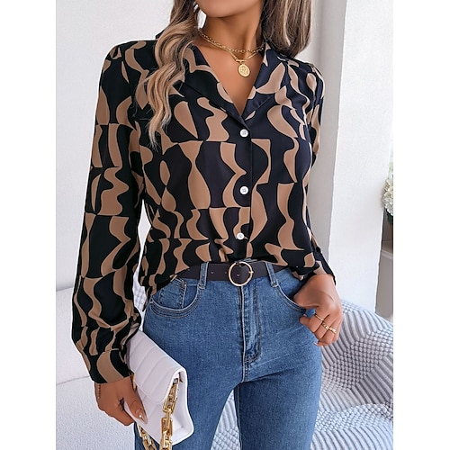 Per donna Camicia Camicia button-down Camicia casual Bottoni Geometrico Elegante Classico Moderno Manica Lunga Colletto a Camicia Top Regolari Quotidiano Lavoro Ferie Nero Marrone Cachi Estate