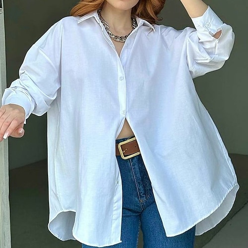 Per donna Camicia Blusa Bottoni Semplice Elegante Manica Lunga Colletto a Camicia Top Regolari Ferie Uscire Bianco Azzurro cielo Rosa Estate Primavera Autunno Inverno