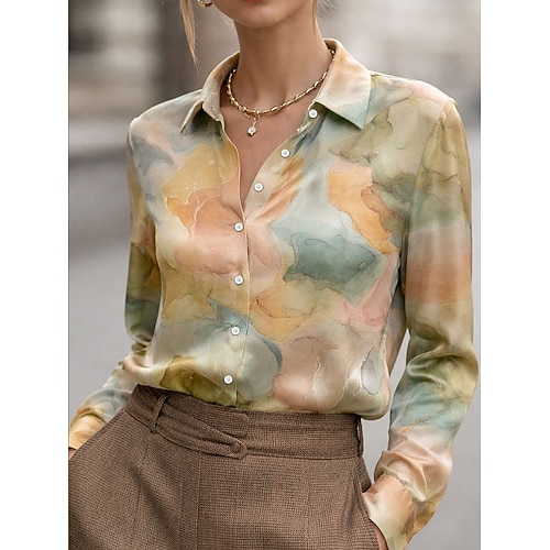 Per donna Camicia Bottoni Stampato Grafico Elegante Classico Moderno Manica Lunga Colletto a Camicia Top Regolari Quotidiano Lavoro Arancione Marrone Verde Primavera Autunno Inverno