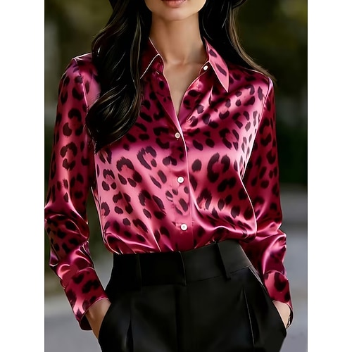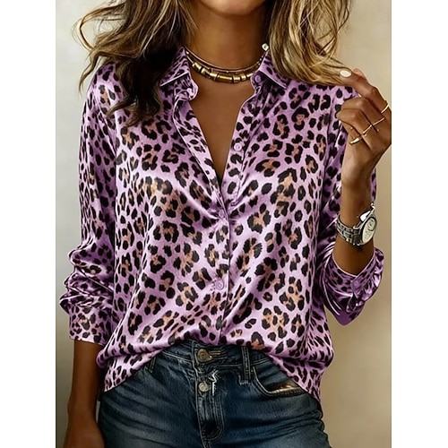 Per donna Camicia Grafico Leopardo Vintage Elegante Moderno Manica Lunga Colletto a Camicia Top Regolari Quotidiano Ferie Blu Rosa Viola chiaro Marrone Rosa Primavera Autunno