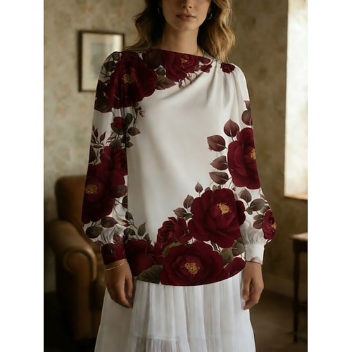 Per donna Camicia Camicia casual Blusa Stampato Floreale Grafico Bohemien Elegante Classico Manica Lunga Asimmetrico Top Regolari Quotidiano Ferie Uscire Rosa Vino Viola Arancione Estate Primavera