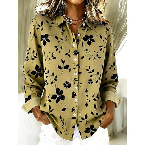 Per donna Camicia Bottoni Stampato Floreale Grafico Vintage Elegante Moderno Manica Lunga Colletto a Camicia Top lunghi Quotidiano Bianco Giallo Rosa Estate Primavera