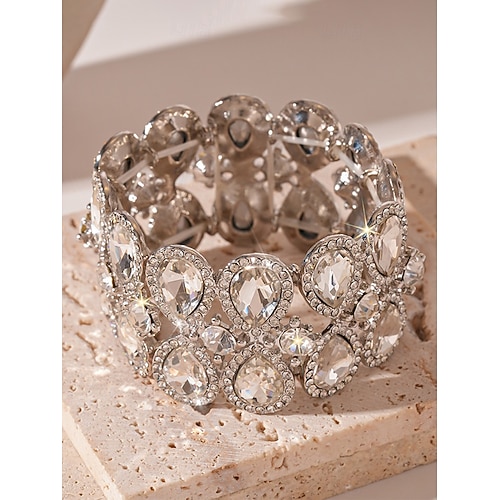 Bracciale rigido con strass da donna - bracciale di cristallo glamour per cocktail party ed eventi serali