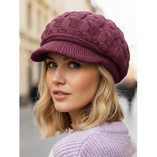 Cappello da donna in maglia acrilica con fodera in pile, vari colori, comodo ed elegante per le attività natalizie e invernali
