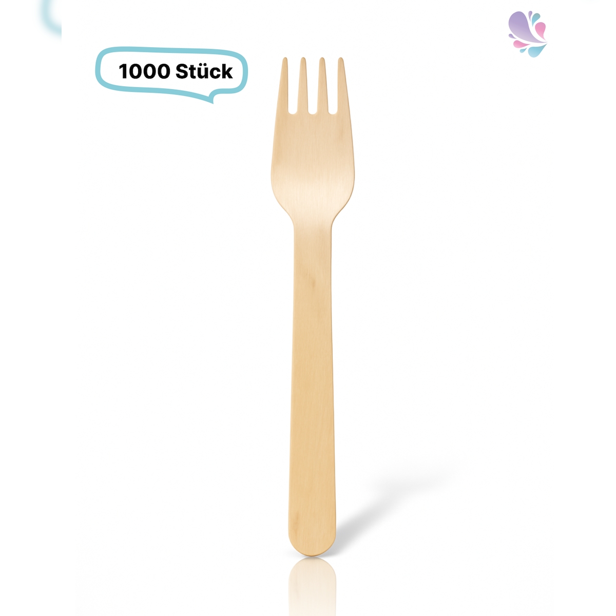 Blanc HYGIENIC Gabel, Holzgabel Einwegbesteck, 1.000 Stk, gewachst, biologisch abbaubar, 16 cm