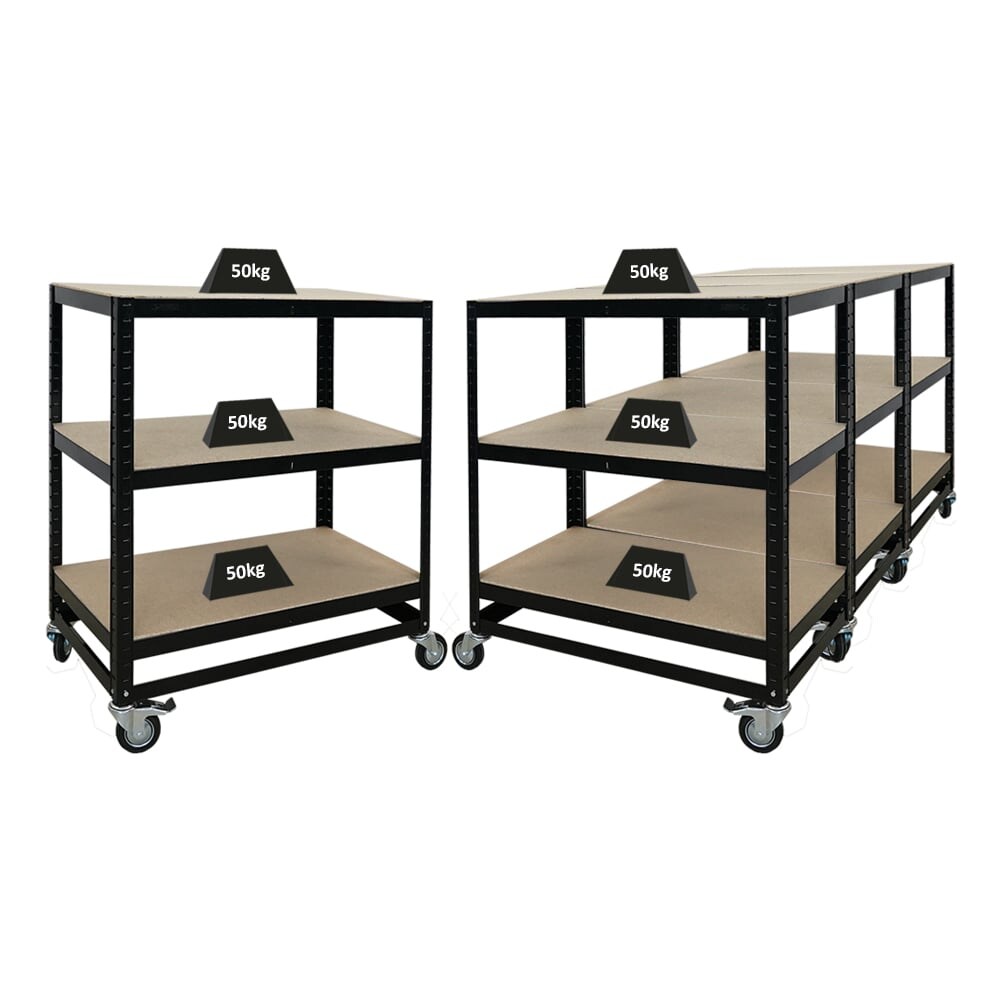 PROREGAL MegaDeal 4 Kommissionierwagen BÜFFEL Kommissionierregal fahrbar 100x90x50cm 3 Ebenen Fachlast 50kg 4 Lenkrollen, davon 2 mit Feststellbremse