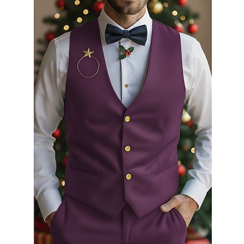abiti casual da uomo per feste di Natale, con revers a V, rosso viola, formali, tinta unita, vestibilità su misura, 2 pezzi