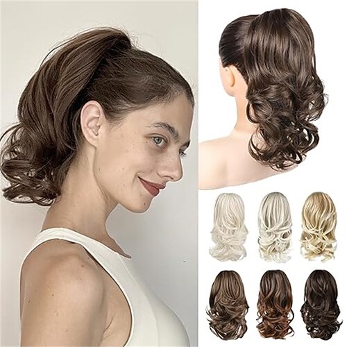 Extension per coda di cavallo - Extension per coda di cavallo con clip a artiglio da 14 - Extension per capelli sintetici morbidi e naturali, ondulati e a strati per donna - platino