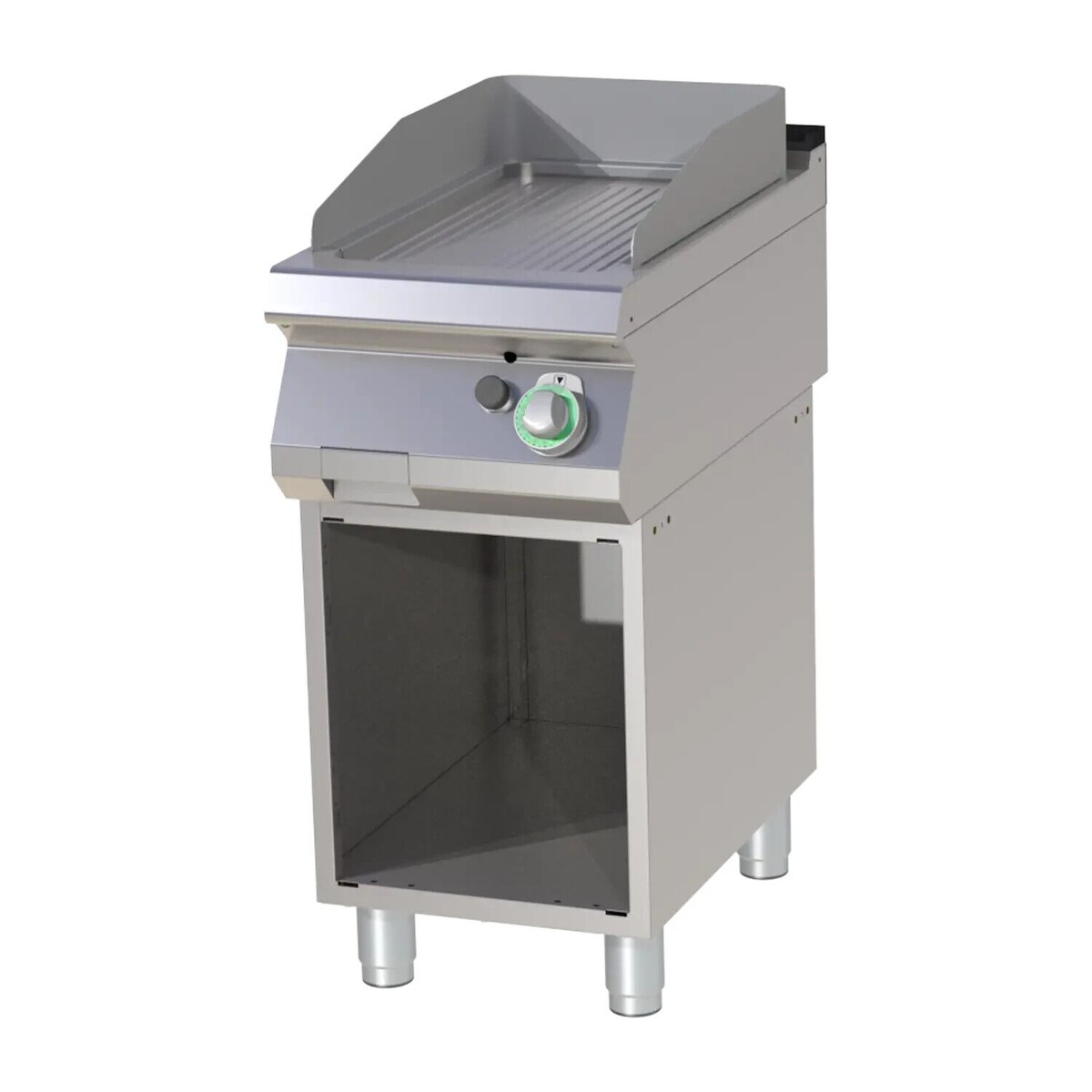 A&S polarny Gastro Gas-Griddleplatte gerillt Standgerät Unterbau Grillplatte Bratplatte verchromt 400x730x900 mm Edelstahl 7 kW