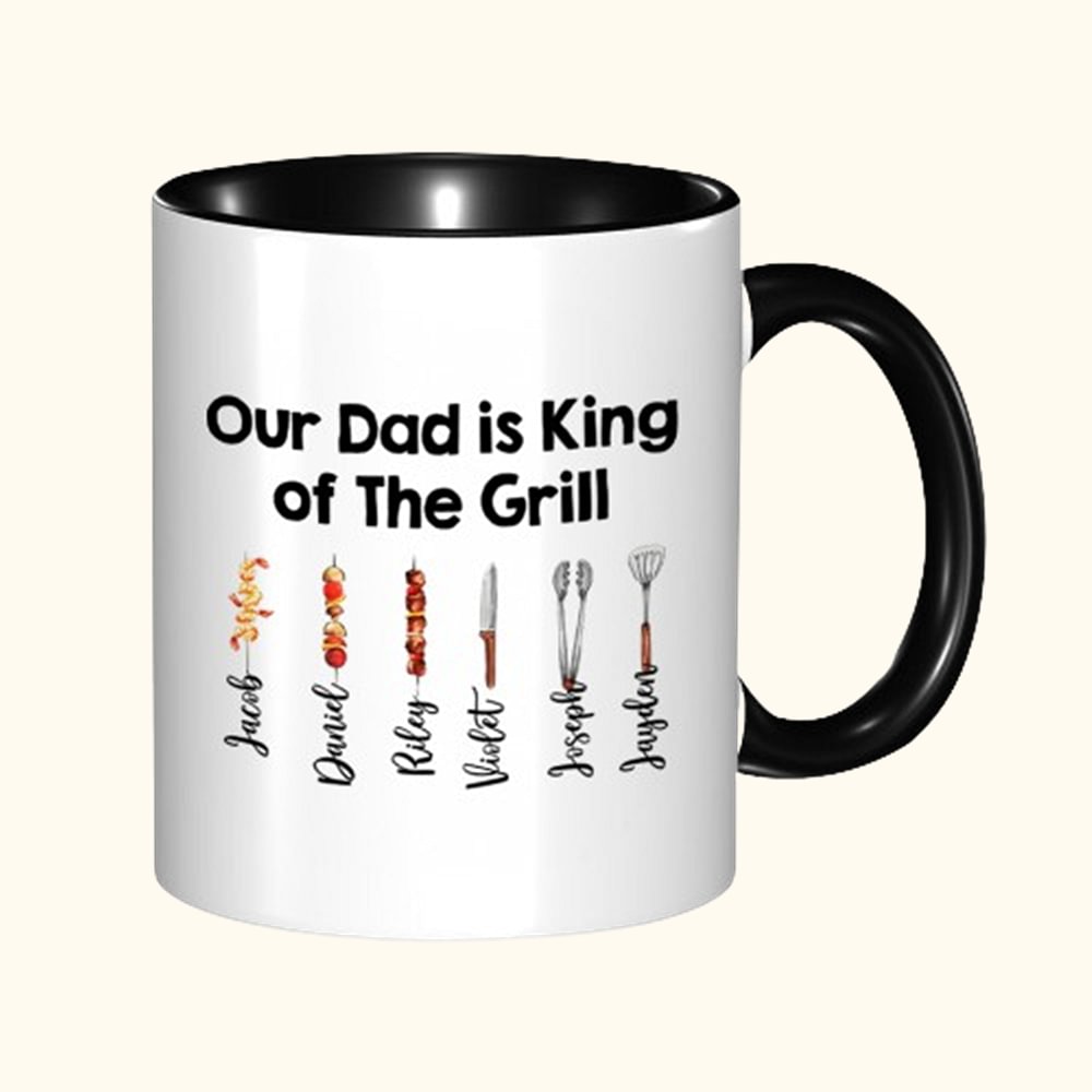 Tazza personalizzata King of The Grill BBQ Theme 11oz in ceramica con 1-12 nomi Divertente regalo di compleanno per la festa del papà per il nonno