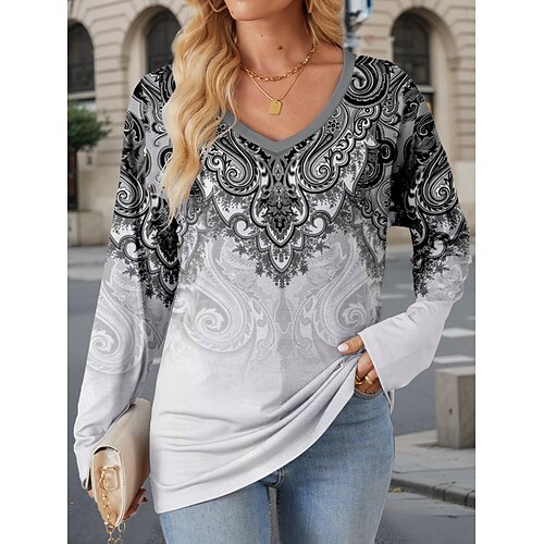 Per donna Plus Size maglietta Color Block Essenziale Manica lunga A V Maglie lunghe Informale Fine settimana Bottoni Tunica fluente Blu Arancione Verde Grigio Autunno inverno
