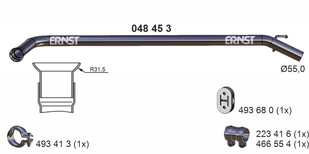 ERNST Abgasrohr 048453 Mitte für RENAULT GENERAL MOTORS OPEL 4417159 93857919 8200537252