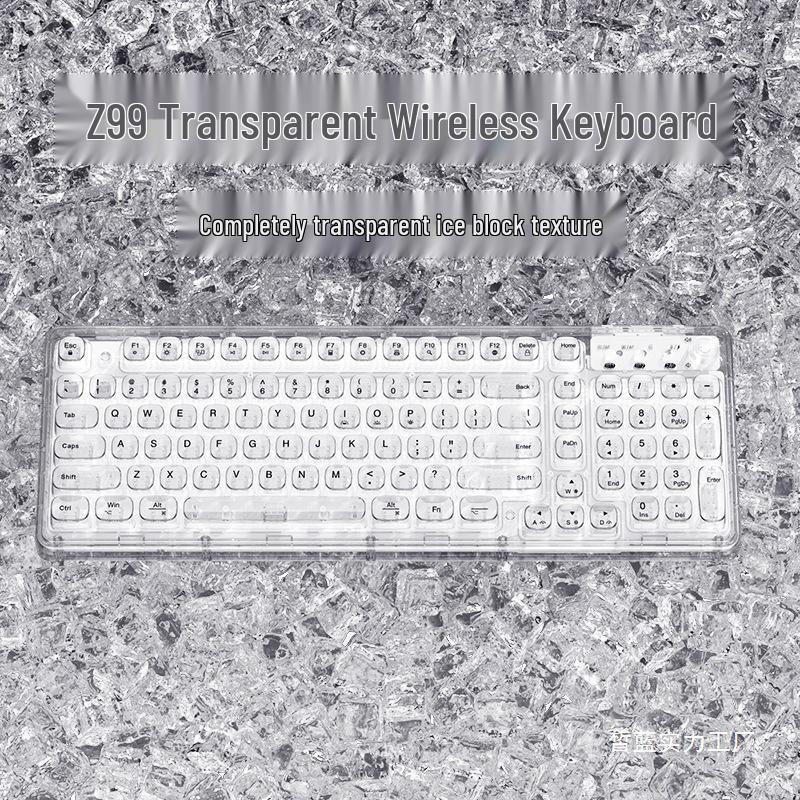 Z99 Wireless Transparent Crystal Keyboard & Mouse Set for Women - Mechanical Bluetooth Office Combo