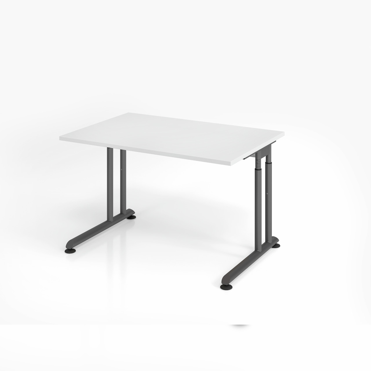 PROREGAL Schreibtisch Nilo | Weiß | Graues Gestell | BxT 120x80cm | Arbeitshöhe 68-82cm | höhenjustierbar, 1cm Raster | C-Fuß-Gestell | Bürotisch