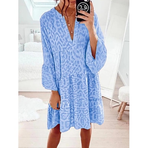 Per donna Mini Abito Abito a Tubino Vestito Estivo Casual All'aperto Uscire Vestibilità comoda Leopardo Manica 3/4 Scollo a V Blu Giallo Rosa Viola Estate Primavera