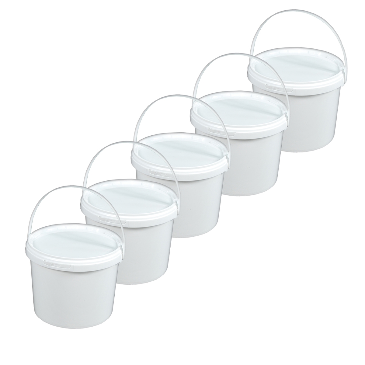 Eimer Deckel lebensmittelecht 3,3 L Liter leer weiß Henkel Kunststoff Set 5 Stück