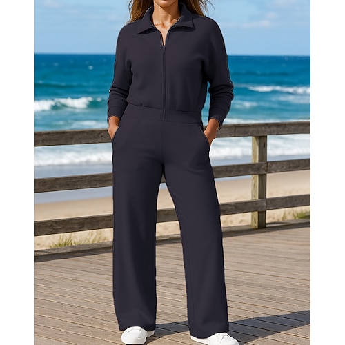 Per donna Tuta intera Abiti da salotto Tasca Tinta unita Completo Abbigliamento Autunno Nero Bianco Cotone All'aperto Viaggio Sportivo Traspirante Manica Lunga Sport Abbigliamento sportivo