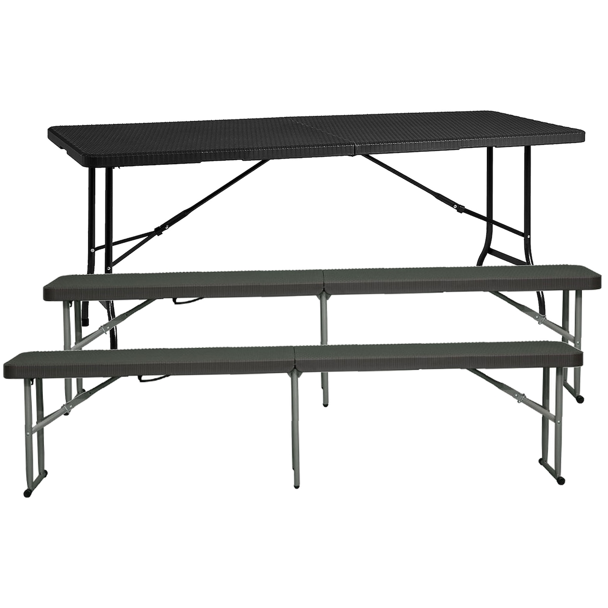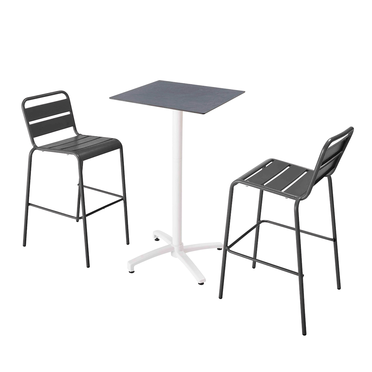 Oviala Business Terrassentisch 60cm kippbar Marmor schwarz und 2 Stühle grau