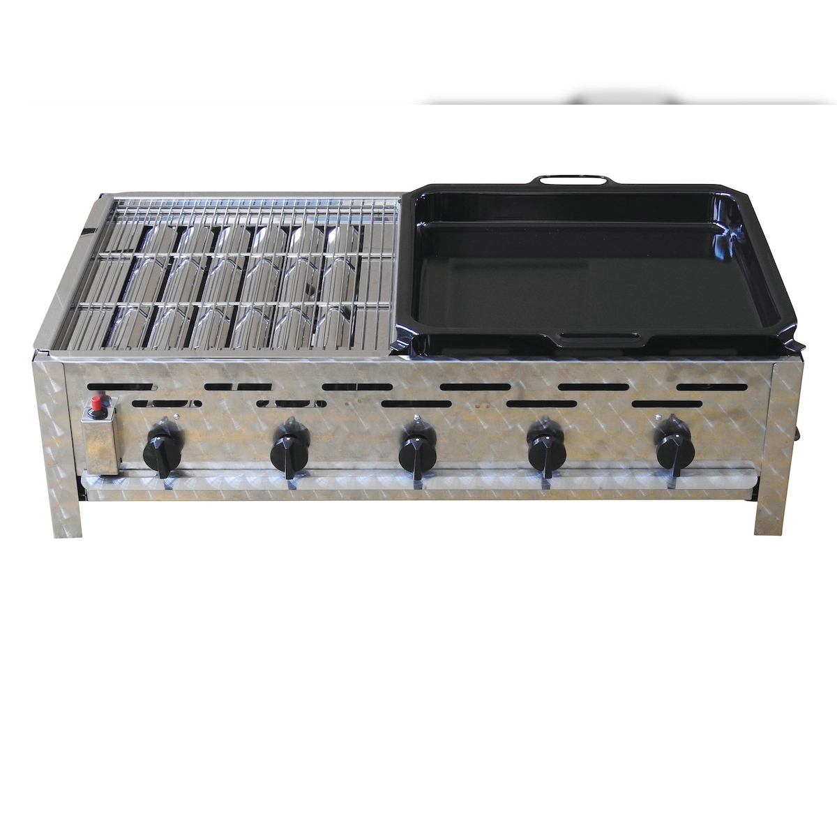 KBS Gastrotechnik KBS Gas Grillplatte 1/3 Und 2/3 geteilte Edelstahlfläche 2 Heizzonen Tischgerät