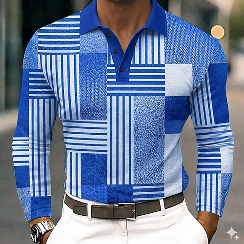 Per uomo Blocco di colori Polo Manica Lunga Magliette polo Bavero Business Casual Abbigliamento quotidiano Stampa 3D Bottoni Primavera Autunno Blu Marrone Verde