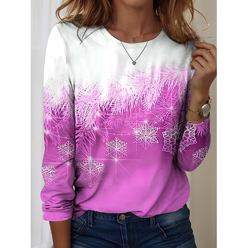 Per donna Maglietta Ombre Grafico Fiocco di neve Vintage Moda Elegante Manica Lunga Girocollo Top Regolari Quotidiano Weekend Stampato Blu Giallo Rosso Viola Verde Primavera Autunno Inverno