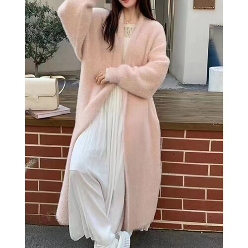 Per donna Felpa Cardigan Elegante Moda Streetwear Tinta unica Aperto davanti Lavorato a maglia Manica Lunga Top lunghi Maglia Quotidiano Ferie Uscire Nero Bianco Autunno Inverno