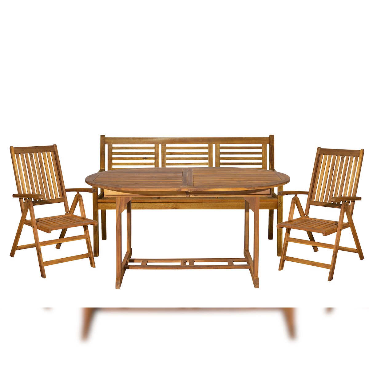 Möbilia 4-tlg. Garten-Sitzgruppe | 1 Tisch, 2 Stühle, 1 Bank | klapp- und verstellbar | Akazie-Holz natur | 31020016 | Serie GARTEN