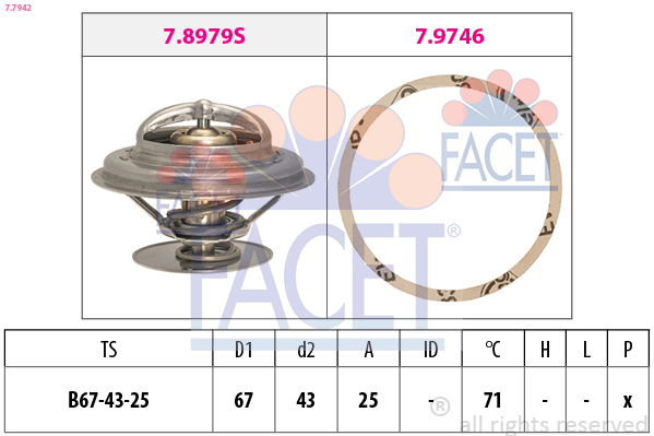 FACET Thermostat, Kühlmittel 7.7942 Universal mit Dichtung 67mm für MAN 51.06402-0062 51.06402-0052 51.06402-0042